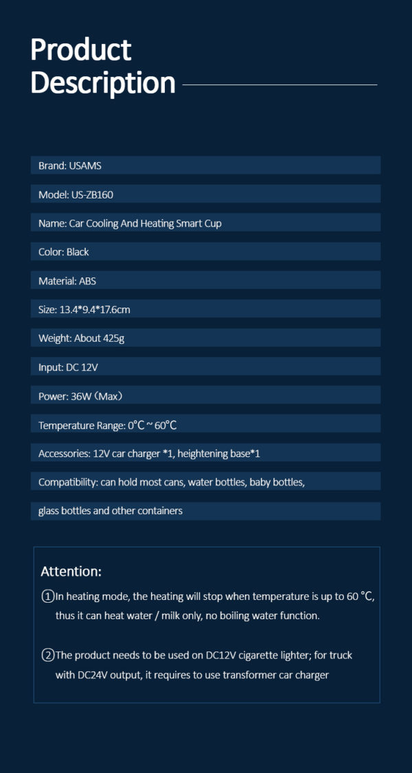 US-ZB160 Car Cooling And Heating Smart Cup