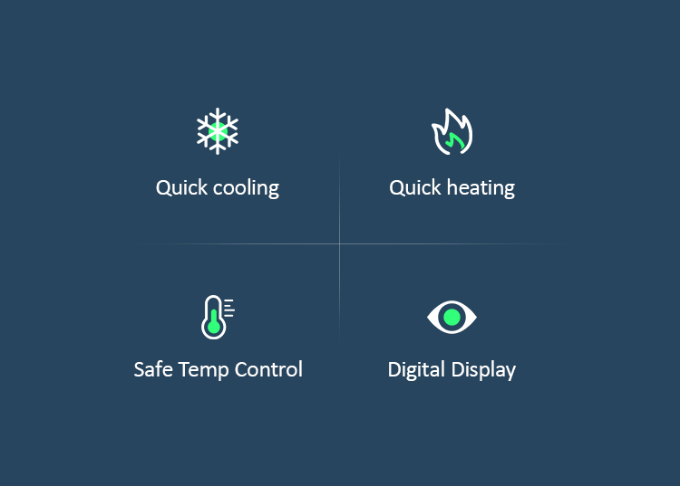 - Quick cooling / heating, wide application.